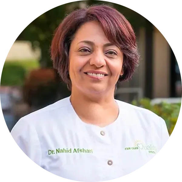 Dr. Nahid Afshari got her degree as a licensed hygienist in 1990 then continued into the field of dentistry and became a licensed dentist in 2001 from the University of Babol, Iran. Within a year she decided to move to California, continued her studies, passed the Board Exam and became a California licensed dentist in 2006.